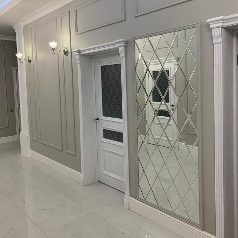 Декорировать простенок зеркальным панно в раме, Москва.